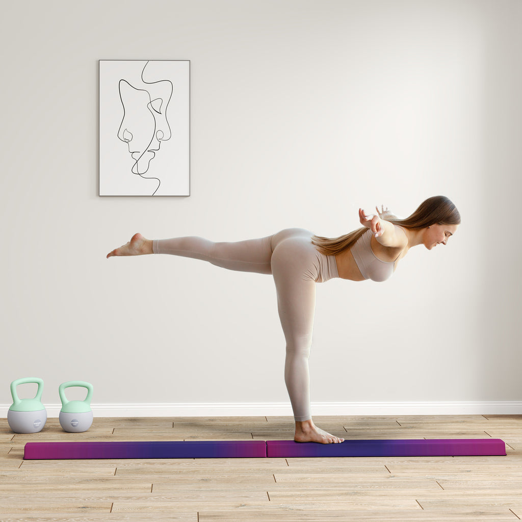 Practise your routine and hone your skills with the balance beam. Suitable for walks, jumps and advanced moves like cartwheels and acro skills, it features a high-density EVA foam core and a 10 cm competition-width top. Suitable for beginners and professionals, its non-slip bottom ensures stability, making every routine safe and enjoyable.
