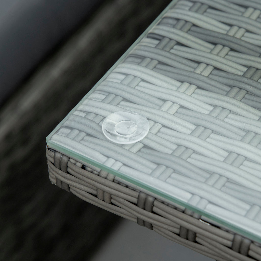 This garden furniture set offers a perfect blend of style, comfort and versatility for your outdoor space. The robust steel frame wrapped in plastic rattan provides a durable yet elegant look that withstands the elements, while the soft cushions ensure hours of comfortable seating. The expandable glass table and multiple seating options let you customise your layout to suit intimate family dinners or larger social gatherings. Assembly is simple with the included manual, requiring two people about 3 hours to complete.