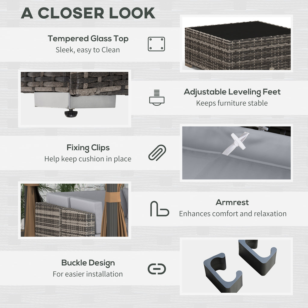 Enhance your outdoor living space with this versatile 7-piece PE rattan garden furniture set, designed for ultimate comfort and style. Featuring a modern mixed grey finish, this patio corner sofa set offers the perfect blend of durability and elegance, making it an ideal choice for relaxing or entertaining guests in your garden or patio area.