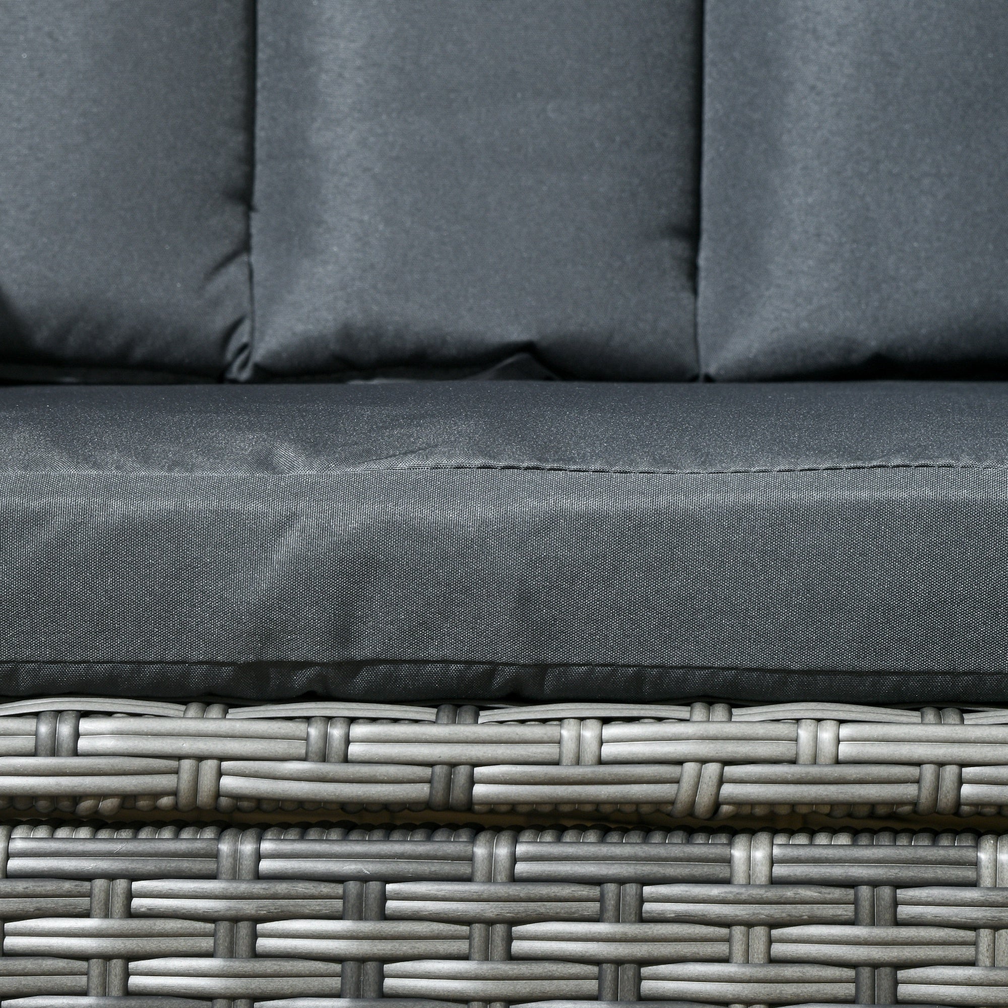 Create a picture-perfect patio with this set. The powder-coated aluminium frames mean strong frames, wrapped in stylish and protective plastic rattan. The high backs and armrests support your body as you sit, with padded cushions for comfort. Set is complete with a glass-top table, with 4. 2cm middle hole to hold parasol in place.