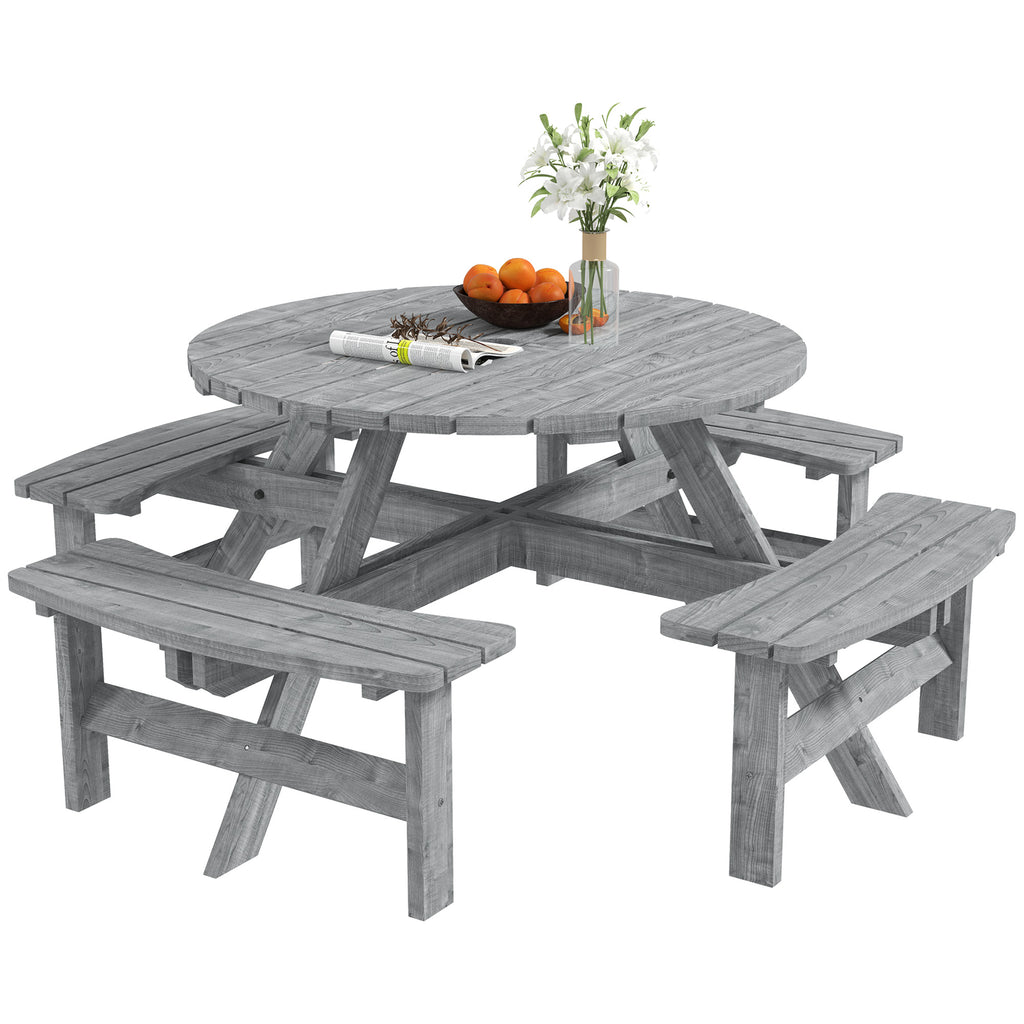 This wooden bench set is a great addition to any outdoor setting, offering the ability to accommodate up to 8 people. Circular design gives lots of room for comfortable movement and enjoyment of the space. A precision-cut hole in the middle for parasol enables shade options in summer. Fir wood construction for added strength and stability with smooth edges and weight capacity of 227 kg for table and 227 kg for bench.