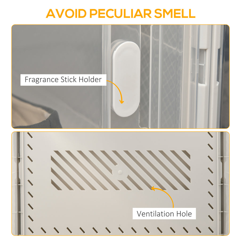 Tired of shoes cluttering your home and gathering dust? Our clear shoe boxes offer a customizable design with eight cubes that can be arranged in any configuration. The cutout design on top allows for secure stacking, making it easy to fit in any space. With transparent plastic, you can quickly find what you need. A practical and stylish addition to your home!