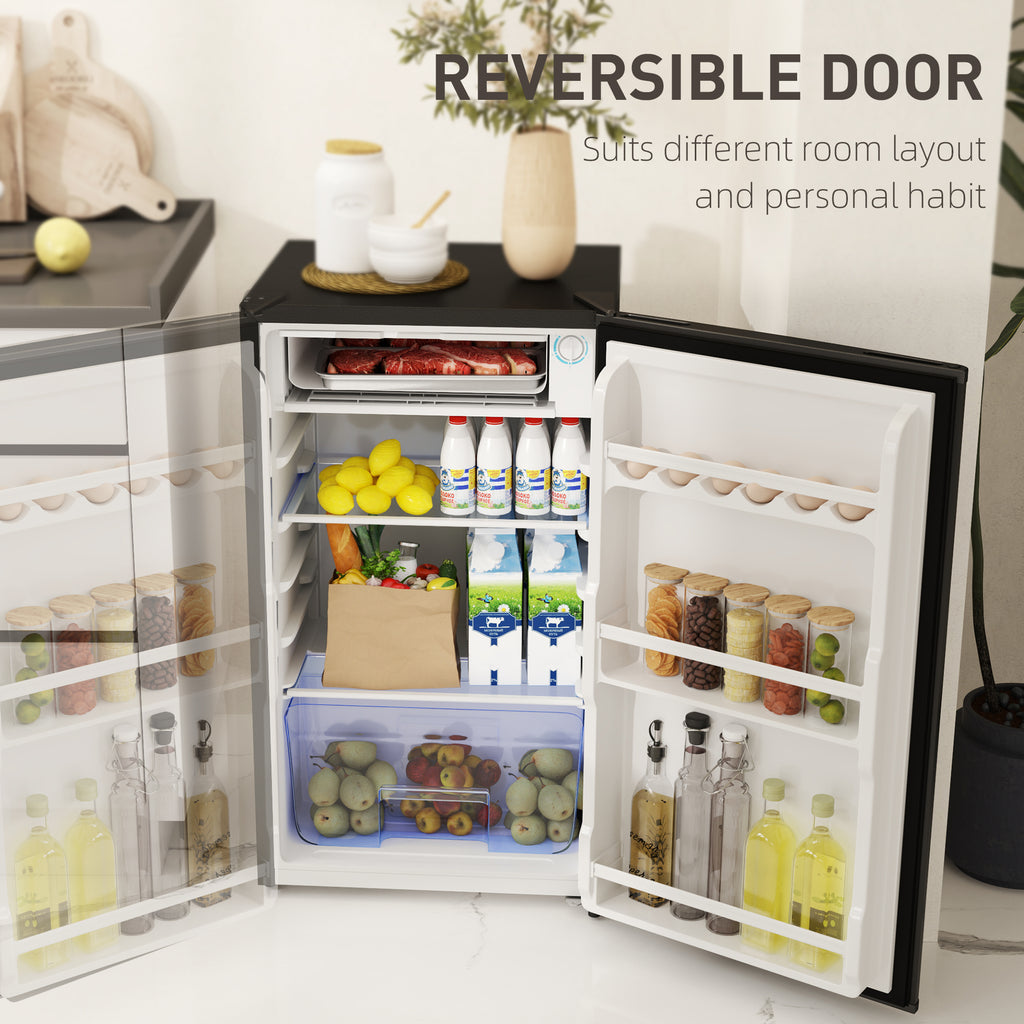 A home and office essential, straight -this small fridge freezer. The under-counter design makes it great for small spaces, bedrooms and even fitted kitchens. The 91 litre capacity small fridge freezer makes the size suitable for a small family household, shared flat or even for using to yourself. Comes with the standard removable shelves, but with a top chiller box as extra to keep your food and drink deliciously cool and tasty. Temperature range: 0-10℃.