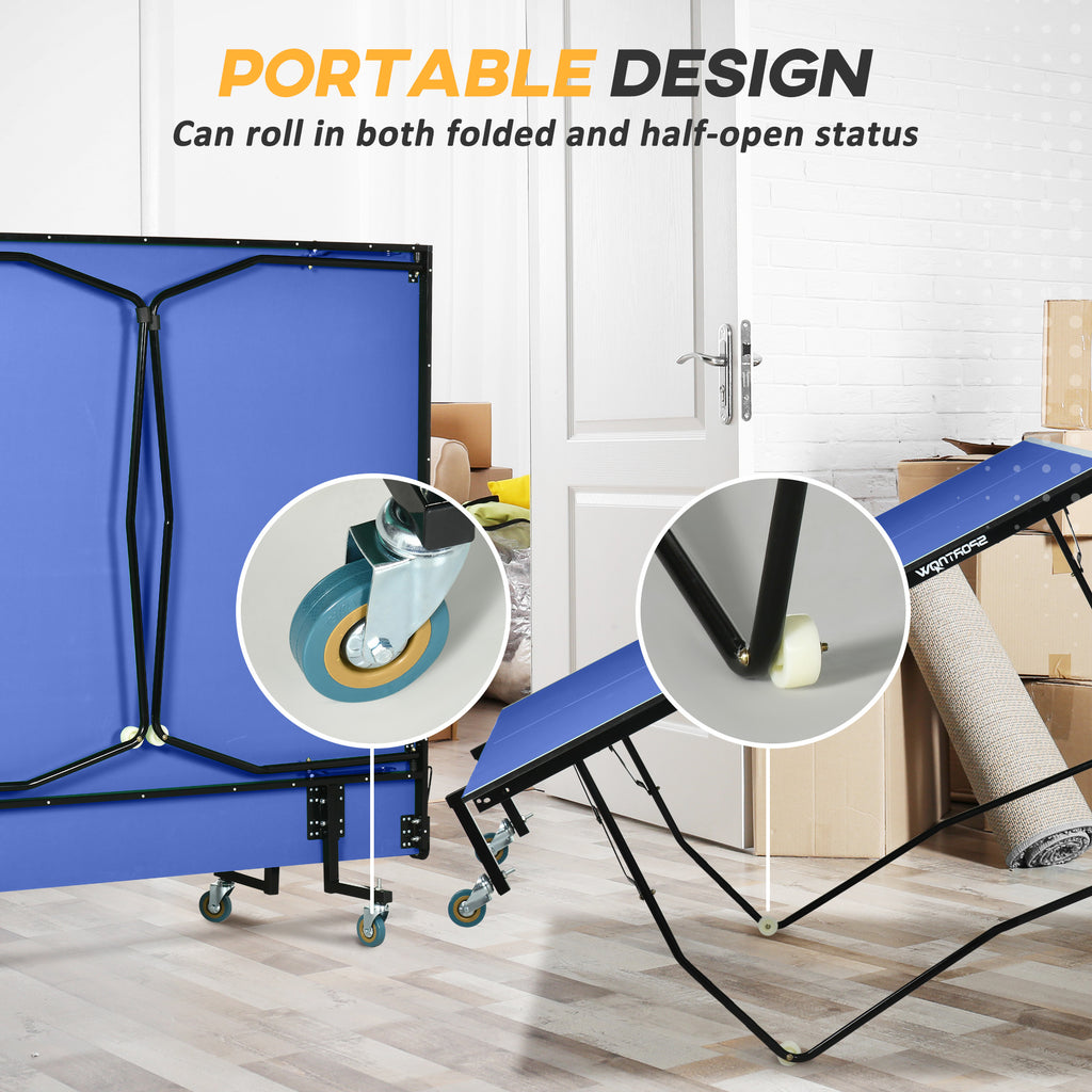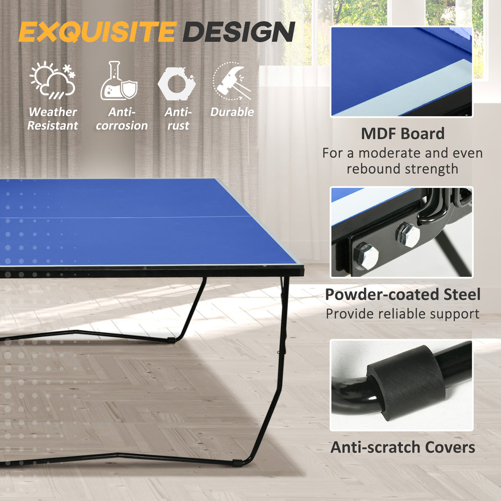 Whether you play professionally or for fun, this table tennis table provides all the enjoyment the sport has to offer. It comes with a net, two paddles and three balls – everything needed to to start playing. When not playing, use the table for other needs by removing the net and detaching the table - it could be for card games, dining or other social activities. When done, fold and store it away to save space.