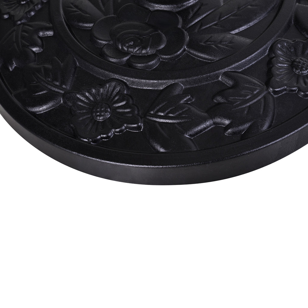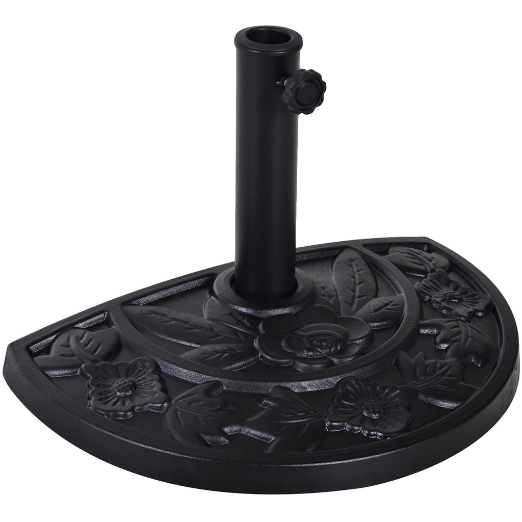 This half round parasol base is a great accessory to have to accompany your half round parasol. Design to work perfectly this type of parasol, it will be able to reduce the amount of space it takes. The garden parasol base has a flower pattern to suit any outdoor setting, it holds the umbrella pole securely and evenly in place. This is a necessary item to have to complete your outdoor setting.