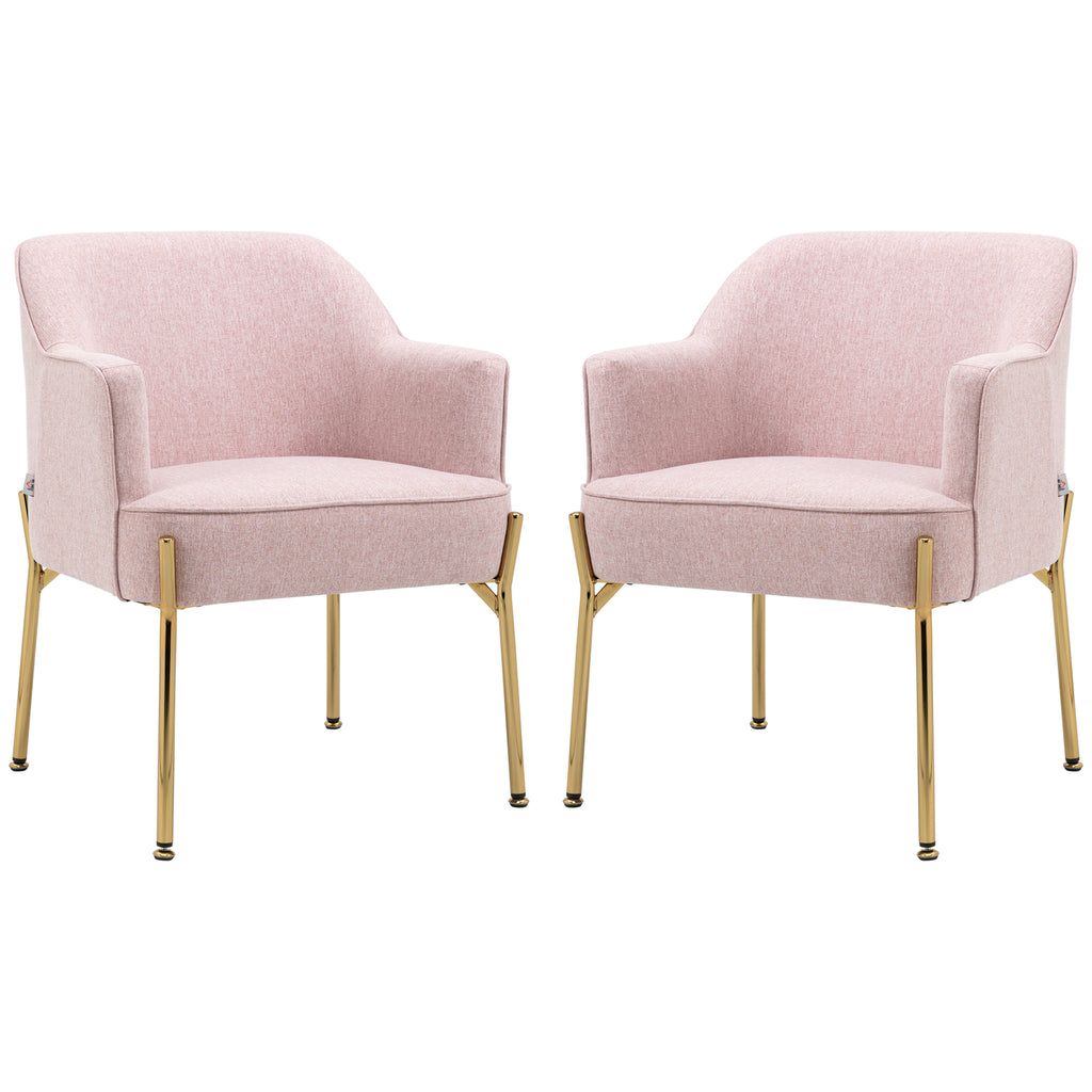 A beautifully simple chair, with a luxe finishing touch: this living room chair. A wide, tub-shaped seat, with high back and arms for support when you lean back; comes with a padded seat for comfort. Its soft pastel shade makes it a delicate addition to your bedroom, hallway and more, which can be mixed into the decor effortlessly. Four steel legs for support, finished in a gold tone for a discreet touch of glam!