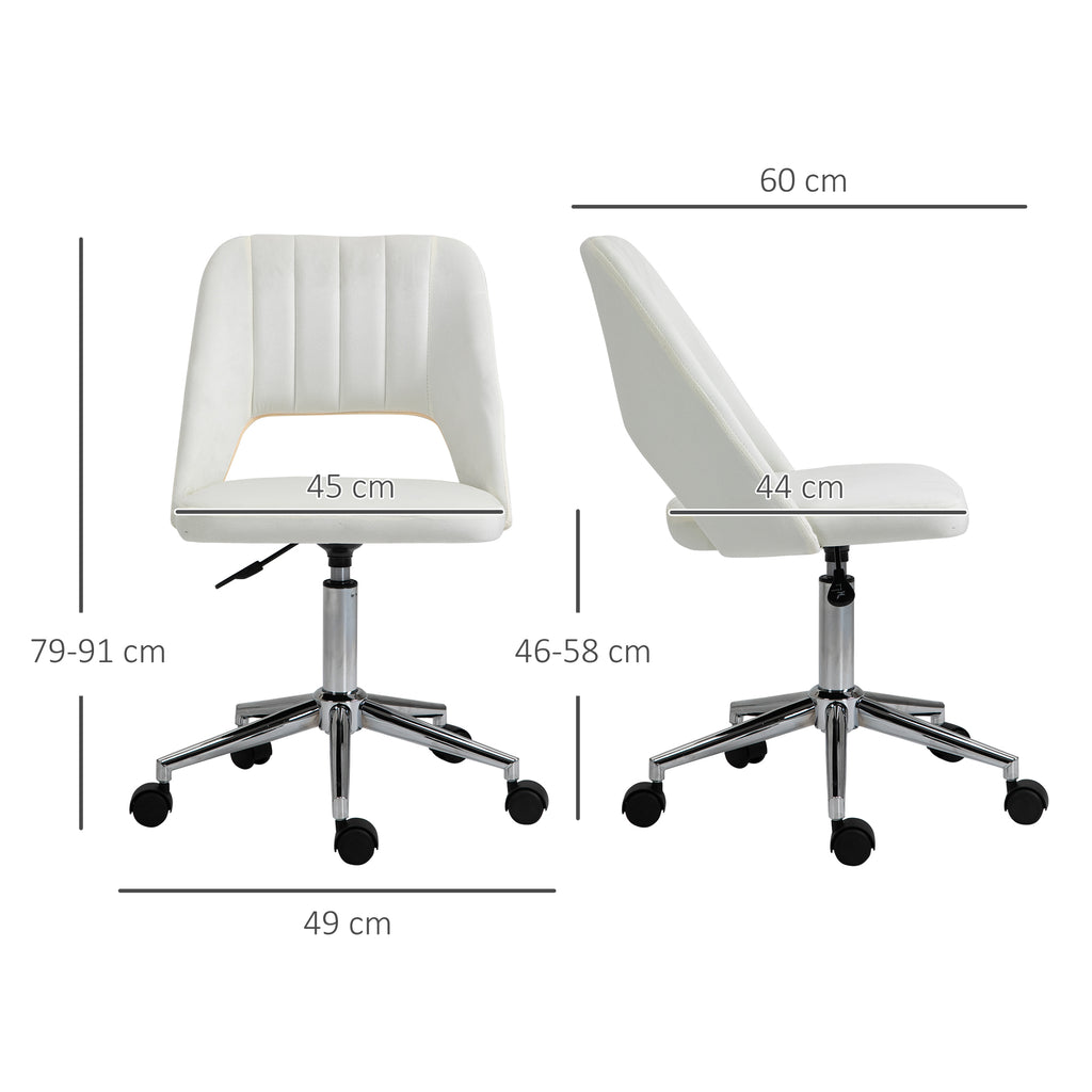 Sometimes we need to bring sophistication into the workday. And now it's easy with this office chair. Crafted into an armless design for a simplistic look, with plenty of sitting room, the comfy chair is wrapped in velvet-feel upholstery - a beautiful look and feel. Both the back and seat are filled with sponge for comfort, with the backrest providing support. The swivel seat moves with your body motions as you work, finished with five wheels on the base.