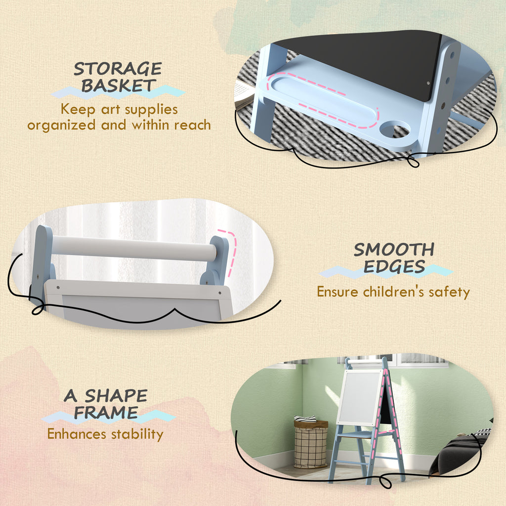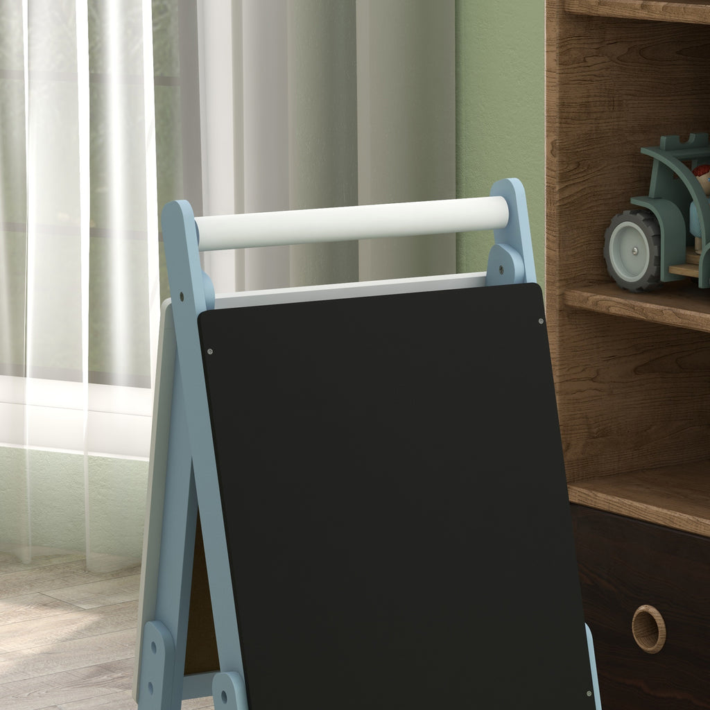 Unleash your child's imagination with our kids easel. Featuring a blackboard, whiteboard and top paper roll, there's lots to do to ignite their artistic genius. With multiple height options, it's suitable for different ages - as your child grows taller, they can still use this easel. Made with a sturdy A-frame, it uses pinewood and MDF for extra durability. Finished with a storage shelf, keeping supplies organised. Let their creativity soar and bring their ideas to life!