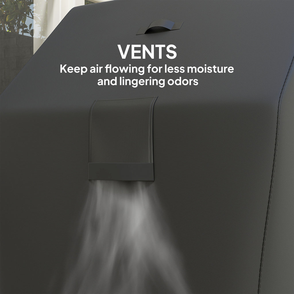 Protect your rectangular BBQ in style with the barbecue cover! Crafted from 600D Oxford fabric with a PU coating, this gas bbq cover shields against rain, sun, snow, dust and other outdoor elements. The convenient hook and loop fasteners ensure a snug fit, keeping your grill ready to use all year round. Embrace peace of mind with this sleek, dependable protector.