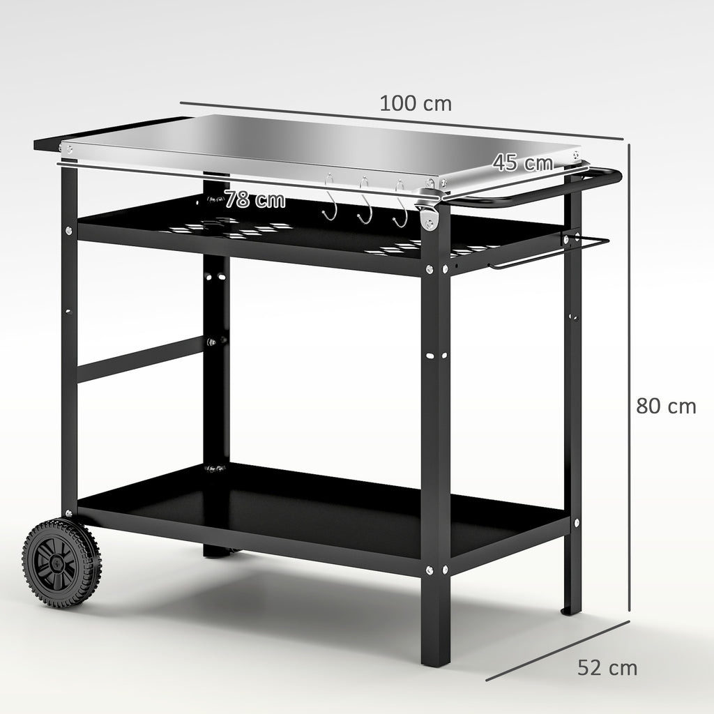 Plan to host some friends? Take entertaining to the next level with an all-inclusive pizza oven table. Featuring a stainless steel tabletop, shelves, a seasoning tray and many functional hooks, this BBQ cart can hold all your meals, drinks and seasonings. Easily portable with large wheels, this outdoor BBQ table is excellent for meal prep and serving at picnics, BBQs, or family get-togethers. Get on a roll with .