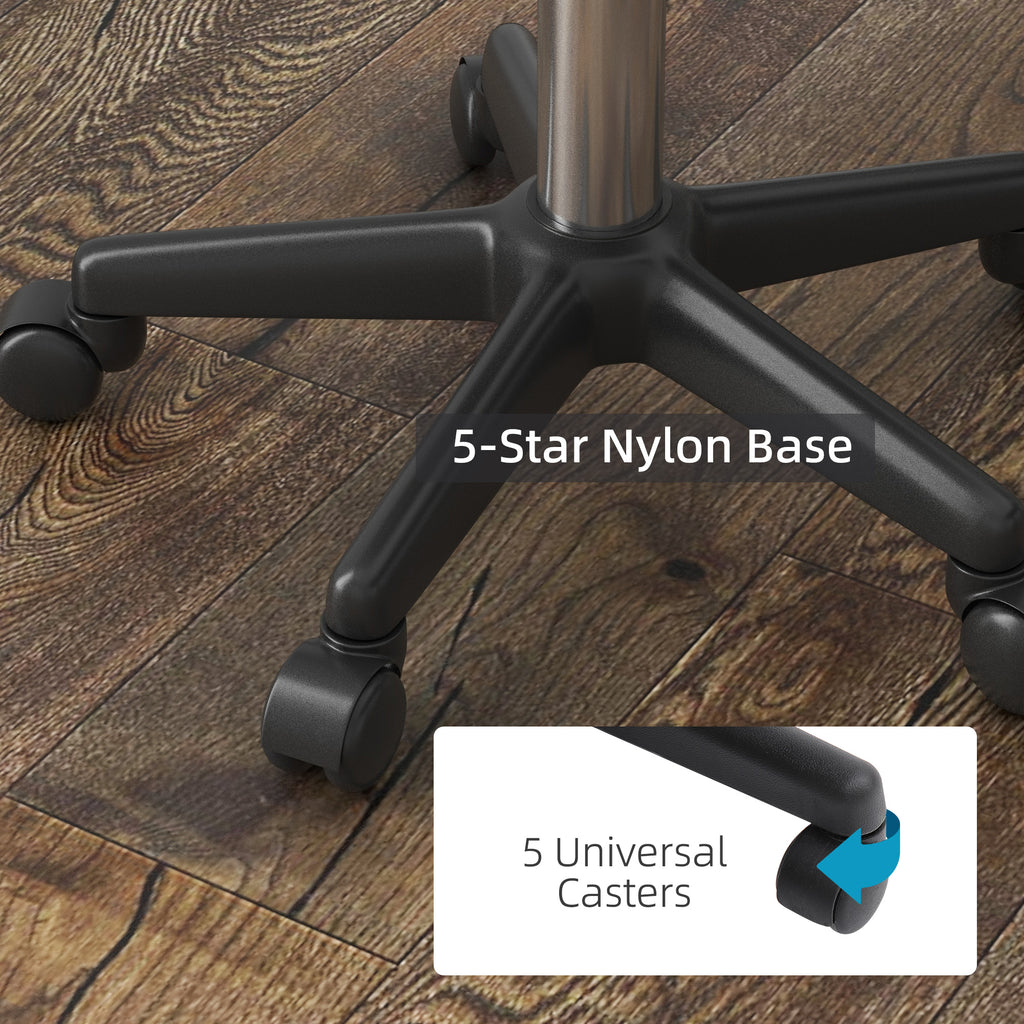 This saddle chair from allows you to sit at just the right height for whatever the task is at hand: painting, styling hair, massage and more. The five wheels allow you to move freely side-to-side, as your body moves naturally. The firm curved back and cushioned seat gives you the comfort needed for long sitting periods, with the steel frame offering full support. So take a seat and focus on your work with complete ease.