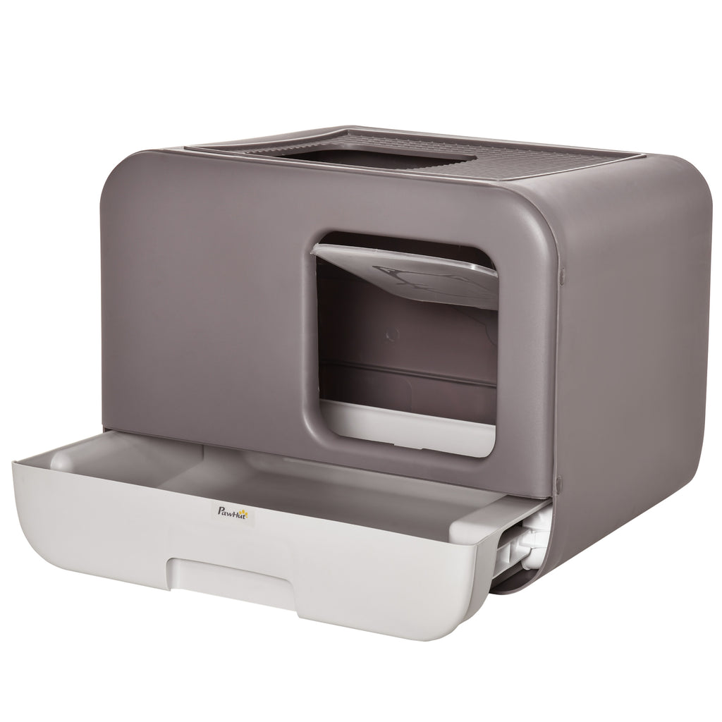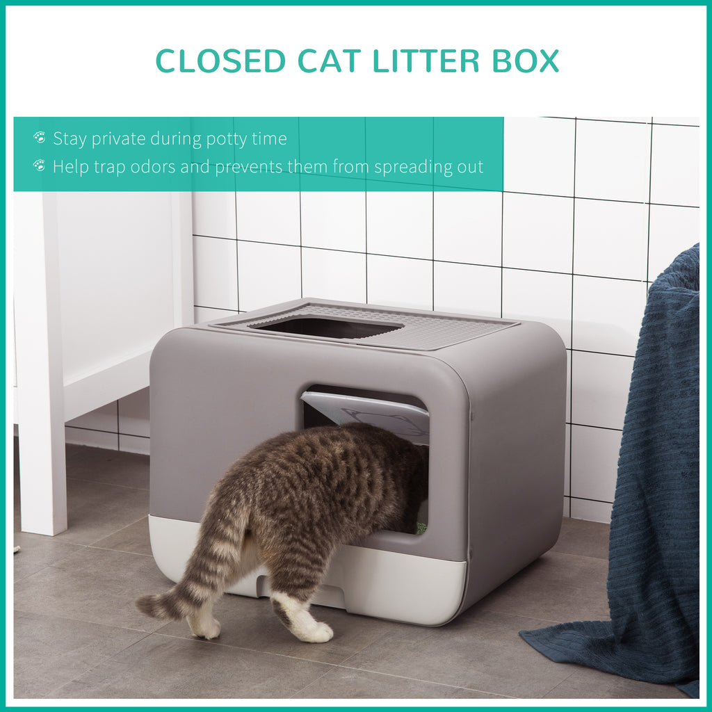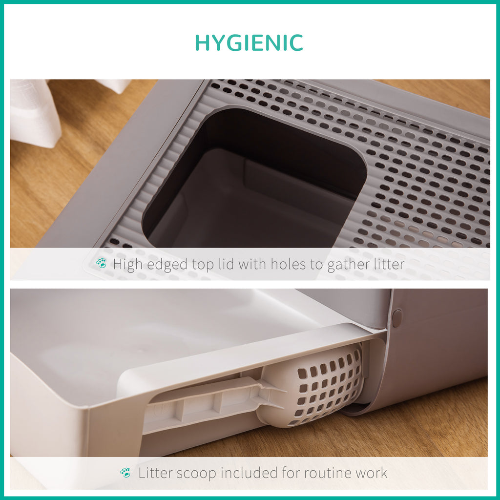 This litter box from gives your cat privacy and comfort, whilst its enclosed design traps unwanted odours, keeping your home smelling fresh. It's simple to get in and out they'll enter through the front door, then exit through the top. It comes with a scoop to easily remove litter, whereas the openable top and slide-out tray makes cleaning effortless. Compact and stylish, it'll fit perfectly in any room.