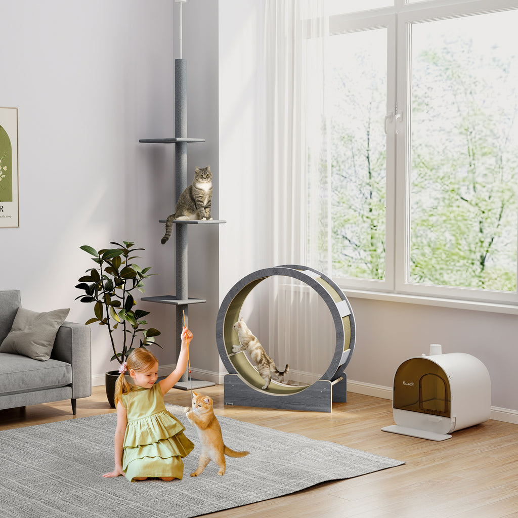 A must-have for cat owners, this cat tree keeps pets active and entertained. Featuring a spinning wheel that supports your pet's natural movements, it also includes a built-in brake to ensure safe, controlled play. Inside, a scratching pad allows cats to strengthen their claws and stay healthy, which is easily replaceable when needed. This fun addition transforms their world for the better, making it a wonderful blend of entertainment and exercise.