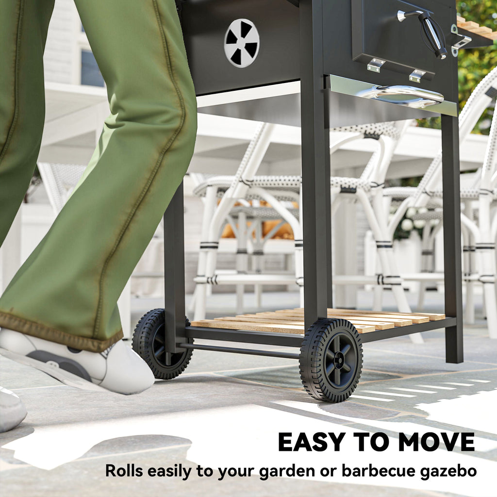 Fire up the fun with the Charcoal Grill – your essential companion for sizzling, flavour-packed cookouts! Featuring a spacious grilling area, it effortlessly cooks up to six burger patties and sausages at once. Take control of your BBQ experience with a 3-level adjustable charcoal pan and a built-in thermometer, ensuring precision heat management for perfectly grilled delights every time. Get ready to grill like a pro!