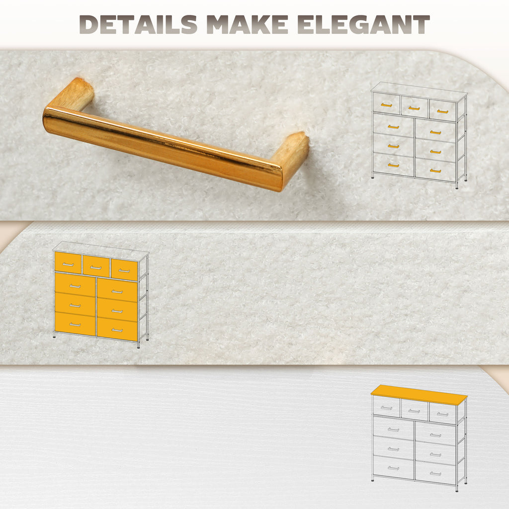 Discover the charm of the fabric chest of drawers, a stylish storage unit with drawers that blend seamlessly into any decor. Featuring nine boucle fabric drawers with chic gold-tone handles, it offers lots of space to tidy up and essentials in style. Its adjustable feet pads ensure stability on any surface, making it a splendid addition to your bedroom, hallway, or living area.