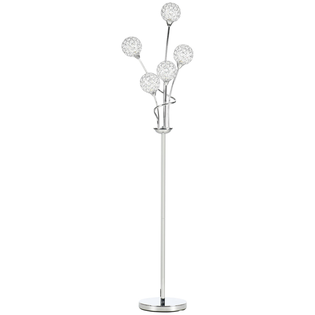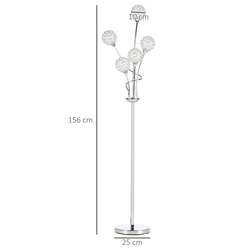This lamp brings that added sparkle into your home - which you didn't realise you needed. The thin and sleek metal frame is fitted with five ball shades; they're formed of an abundance of crystallite beads - as the light shines through it'll create a glistening atmosphere. Comes with a foot pedal so you can turn this lamp on and off easily. Brighten up your home and living space, instantly.