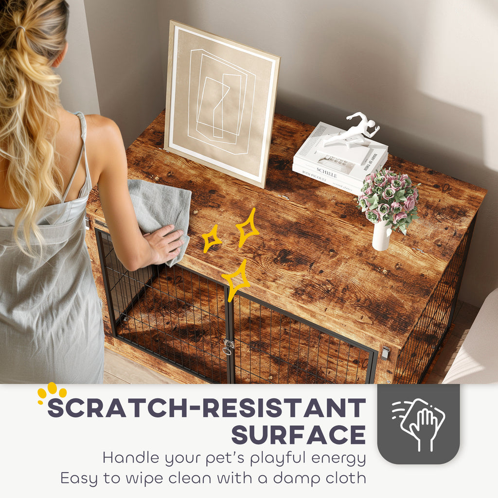 Discover the versatility of 's dog crate furniture, a stylish blend that doubles as a side table. Enjoy the convenience of a top opening that makes comforting your pup easy, while dual doors with secure latches and three-sided ventilation offer comfort and accessibility. Suitable for large dogs, this piece combines functionality with sleek design to complement your home decor.