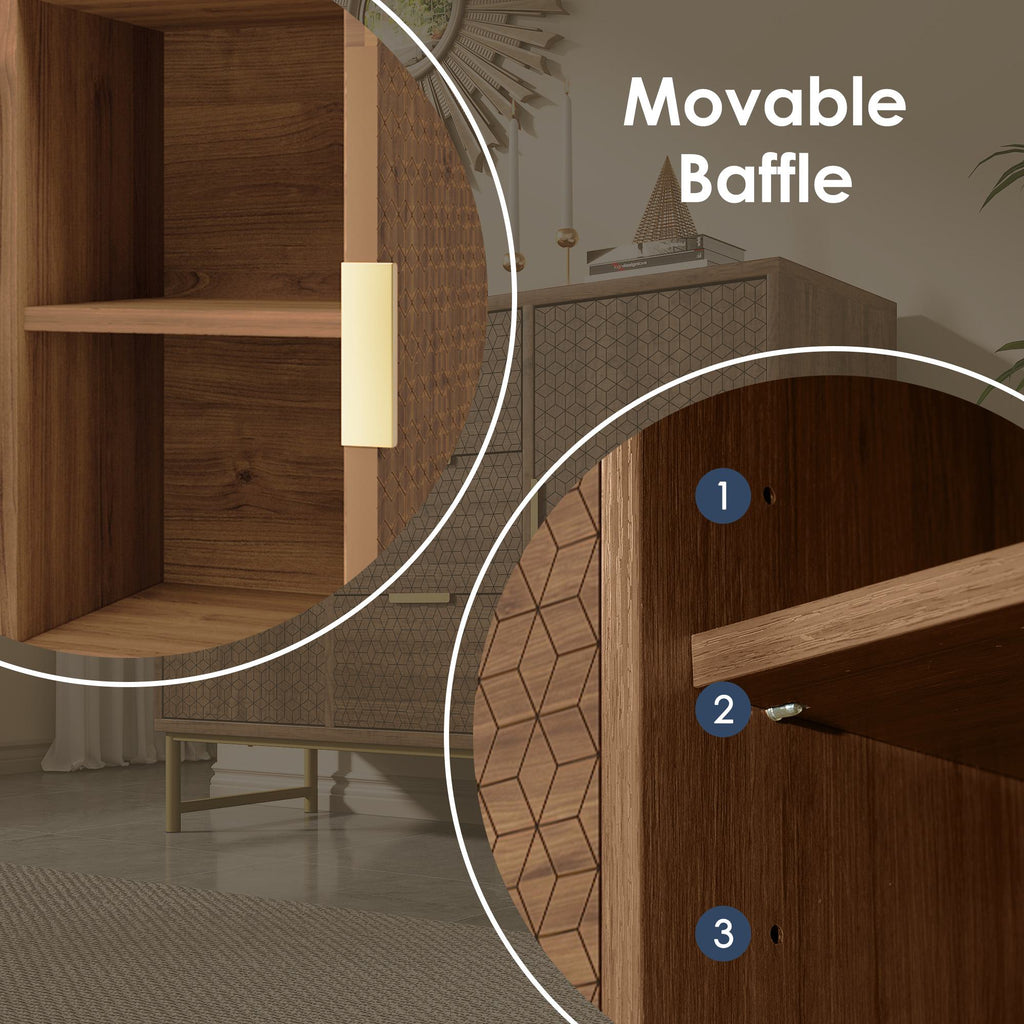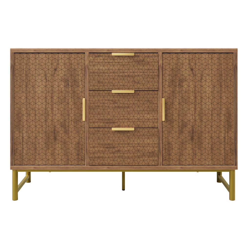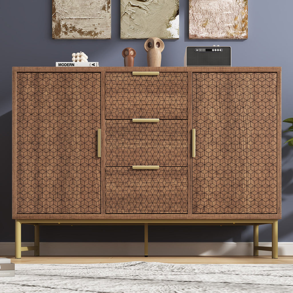 Embossed Design Sideboard Cabinet with 3 Drawers and 2 Doors, Adjustable Shelves, Anti-tip, Storage Cabinet, 120L x 40W x 75H cm, Walnut