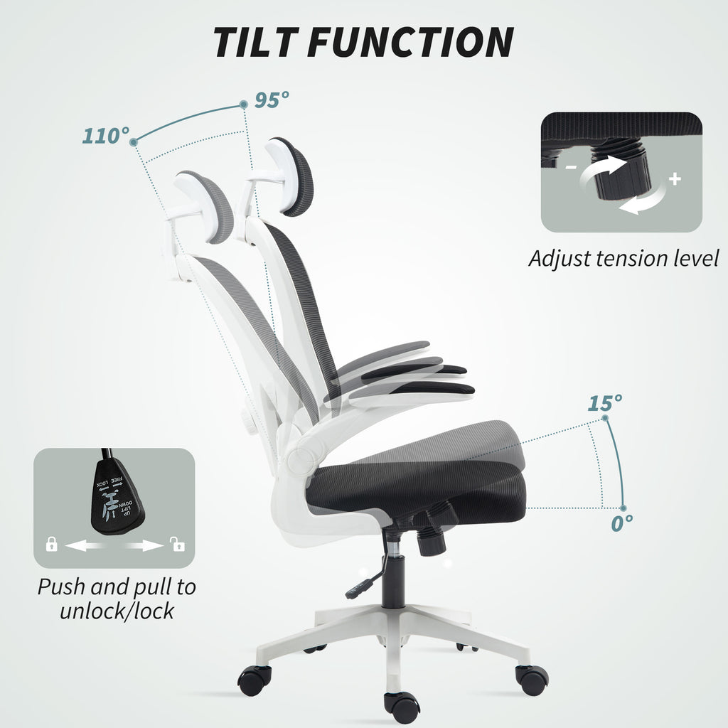 Discover the comfort of the ergonomic chair, a must-have office chair for home office setup. Enjoy customisable support with a headrest and lumbar support that adjusts to your preferred positions. Wrapped in breathable mesh and high-density foam, it's the great swivel chair to enhance your productivity and comfort. Suitable as a desk chair for home office or bedroom.