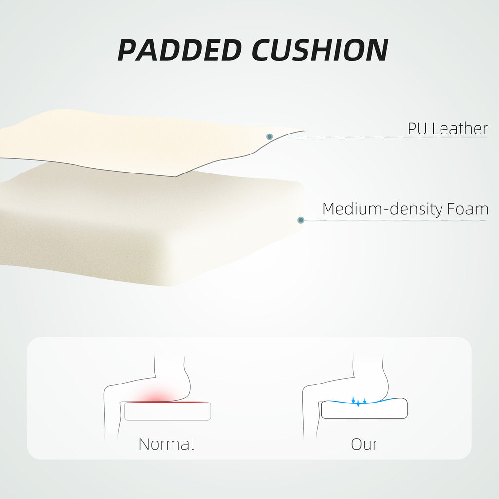 Need a comfortable office chair? Look to this number. Padded all over, with PU upholstery, making it a comfortable seat for everyday use. The height and back angle are both adjustable, making it easy to set to a position you want. A manual retractable footrest to elevate the lower body. High back and armrests for support. Fully swivelling seat to move with your body. Five wheels to move around easily.