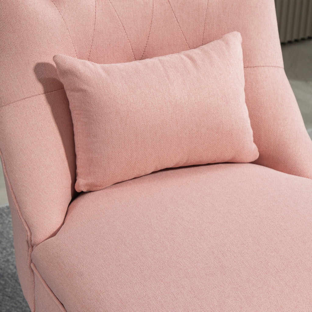Sink into something comfortable without sacrificing on your precious home space with this accent chair, . Linen-look fabric, the curved wooden legs and delicate button tufting on the back evokes a vintage style - a statement in any setting. Soft cushioned seat and curved backrest for comfort and support. Something different for this season and beyond.