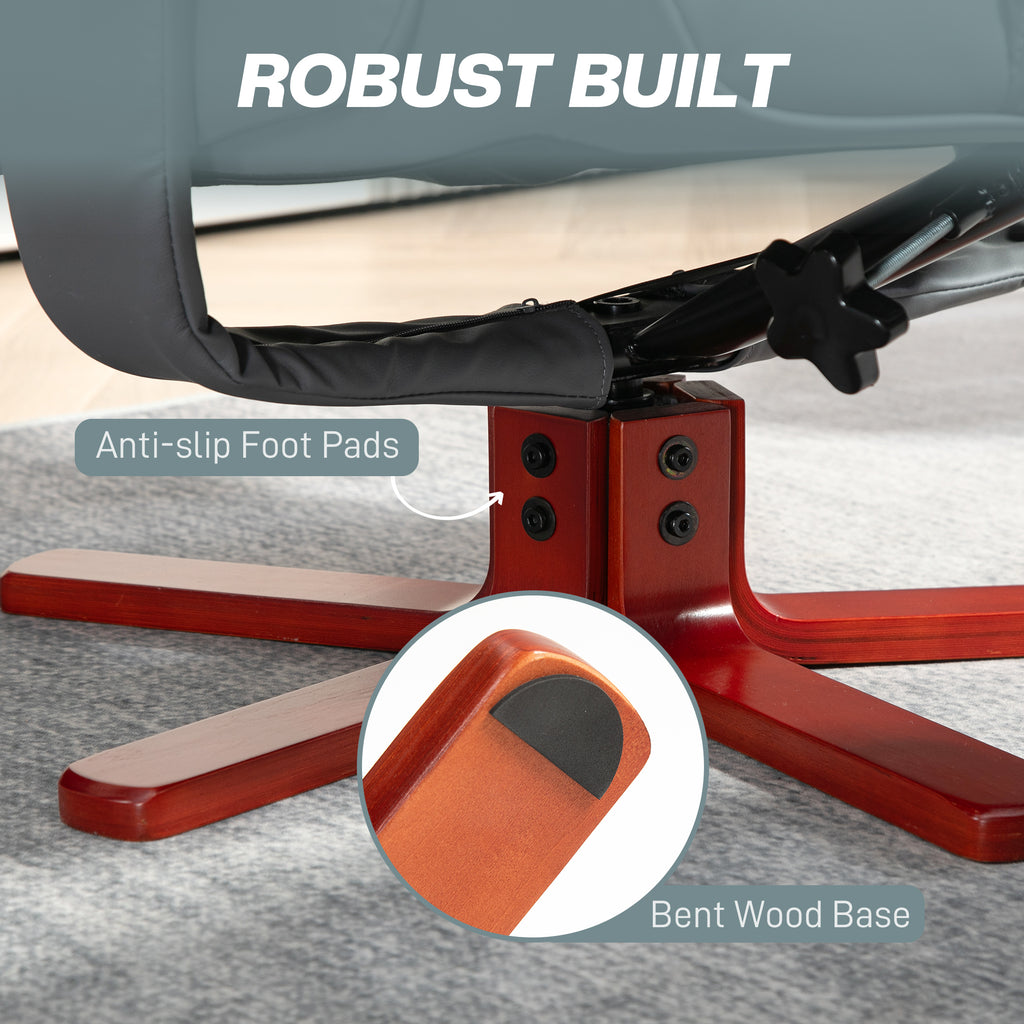 Sink into the comfort of this reclining chair and footstool set. Maximum 135° angle of the back adjusts effortlessly to your preferred angle - sit how you want. Filled with sponge for comfort, both pieces are wrapped faux leather for an effortlessly cool look.