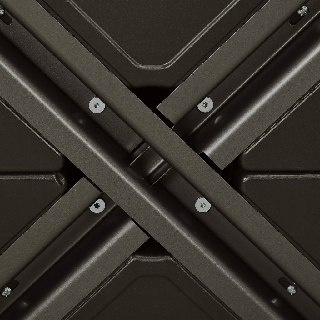 Ensure your 360° rotating patio offset umbrella is always held firmly in place with the base for cantilever parasol . Made from strong HDPE, it needs to be filled with water or sand to increase the weight, keeping stability outdoors. Comes with smooth wheels, easy to move around. Whether you wish to use this for the garden, patio, or poolside, this is the parasol base for you. Combine our umbrella weight base with a cantilever roma umbrella and create your own oasis under shade.