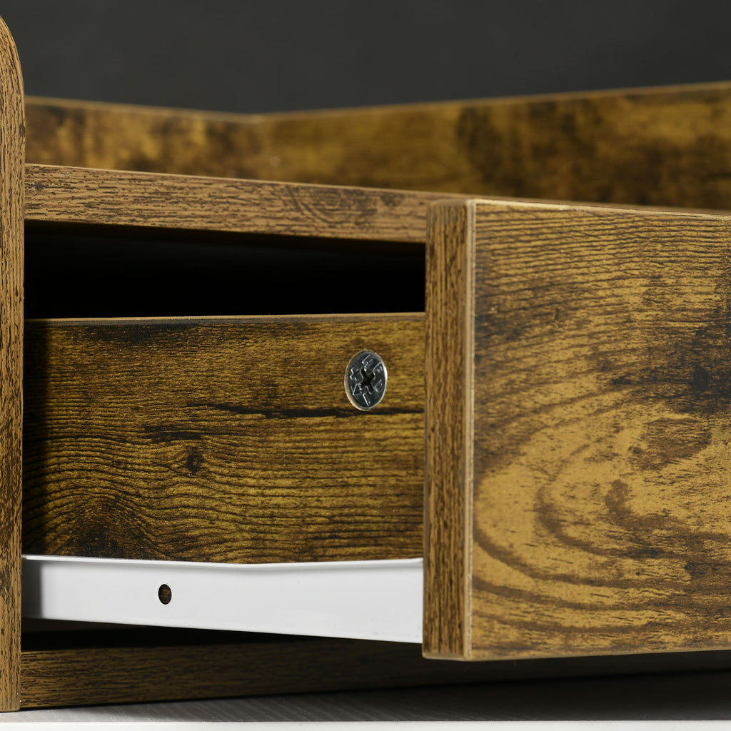 Go for classic furniture styling for bedtimes. Go for these two bedside tables. The firm particle board structures come in a wood-effect look - leave natural or customise how you want. Both tables are floating - individually fix to a position of your choice. With a pull-out drawer and flat top shelf, there is plenty of storage room for bedtime essentials, a clock and lamp. Package comes as a set of two.
