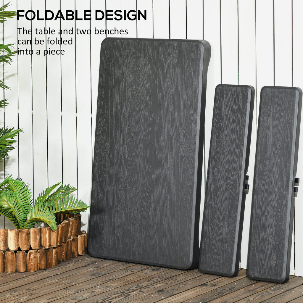Use the lightweight folding innovation of a German-style beer table from . This three-piece outdoor dining set is foldable, easy to carryand heavy-duty. Made of a strong steel frame and waterproof HDPE, that allows 240kg per bench, set up seating for four. Put it in the garden for parties or picnics. Whether you're putting on an October fest or just need outdoor seating this set is the solution.