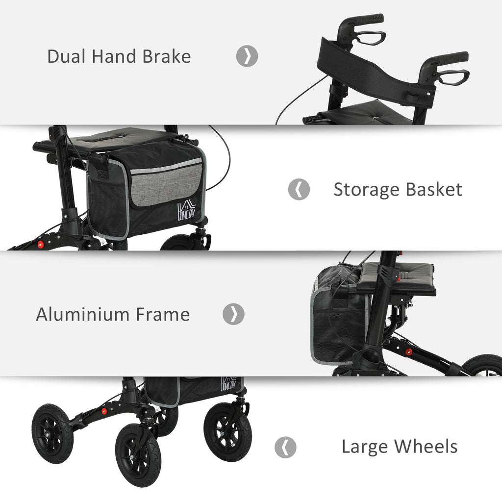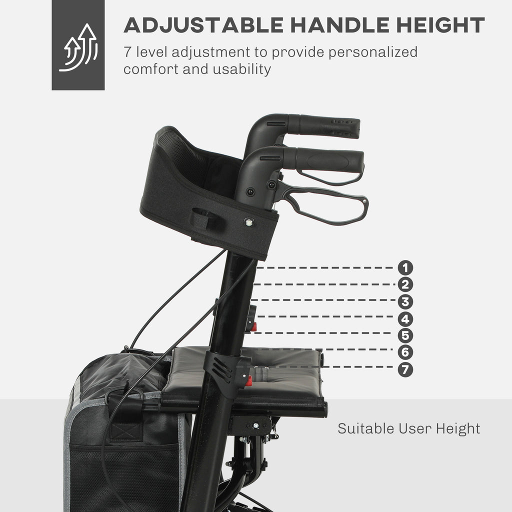 Explore the great outdoors with ease using the Rollator Walker with seat and wheels, your reliable mobility aid. This four-wheel rollator with seat features a comfy padded seat and supportive back, great for restful stops. Glide smoothly over any terrain with its large, all-terrain rubber wheels and maintain control with the dual hand braking system. Suitable for anyone 160-190cm tall, it's your go-anywhere walking aid for the elderly.