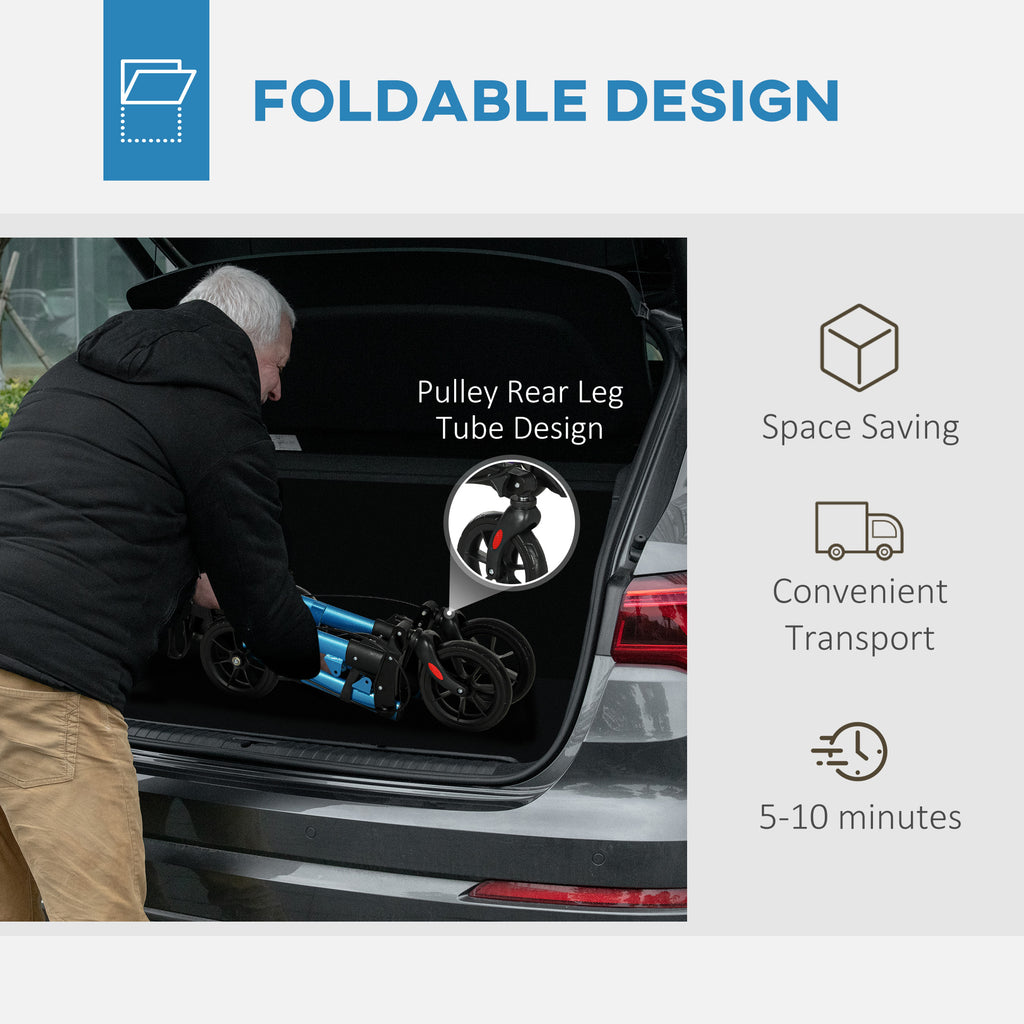 Folding Rollator Walker with Seat, Backrest, Lightweight Walking Frame with Storage Bag, Dual Brakes, Adjustable Handle Height, Suspension System, 4 Wheeled Walker for Seniors, Blue