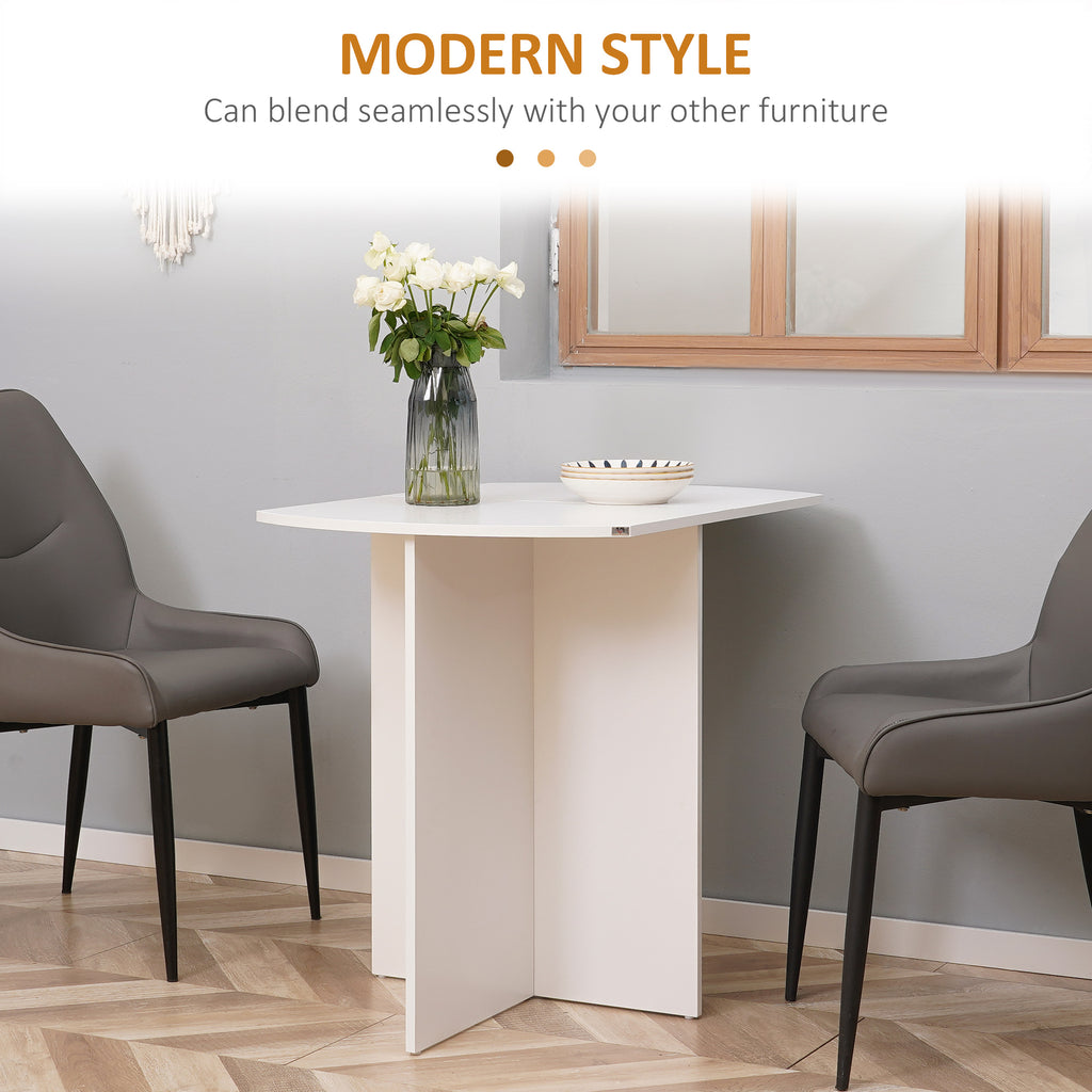 Space-saving dining comes with this drop leaf table. A side lifts from the bottom to provide extra surface room for up to four people, whilst dropping back down into a compact size - it's great for smaller rooms. Made from particle board this is a solid piece suitable for everyday use, finished in white for a beautifully classic look.