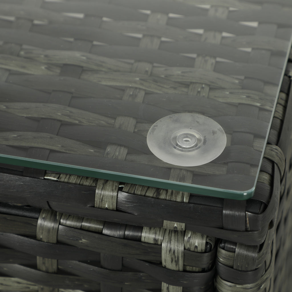 This rattan furniture set allows you to rest and relax outdoors. Rust-resistant steel frames make strong pieces, with plastic wicker for a beautiful and tough rattan look. Seat and back cushions for comfort. Tempered glass tabletop for a sleek look - easy to maintain.