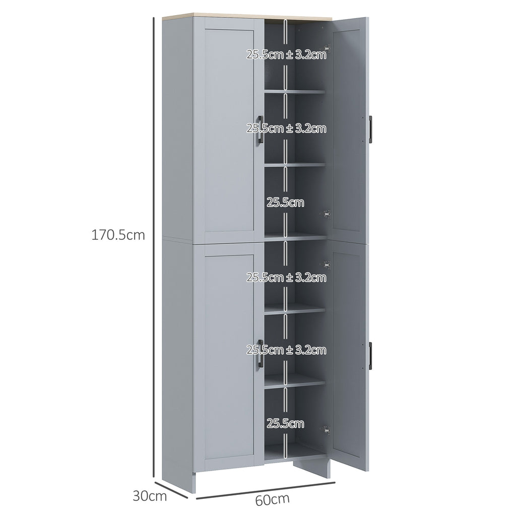This tall storage cabinet is an easy and stylish way to keep your home tidy. Made from particle board for a sturdy structure, it's formed into a tall and narrow design, making it great for fitting into smaller spots. Inside there are five shelves for storage and organisation - adjustable to fit in differently-sized pieces. Four doors to access top and bottom sides easily. Complete with anti-tipping straps for safety.