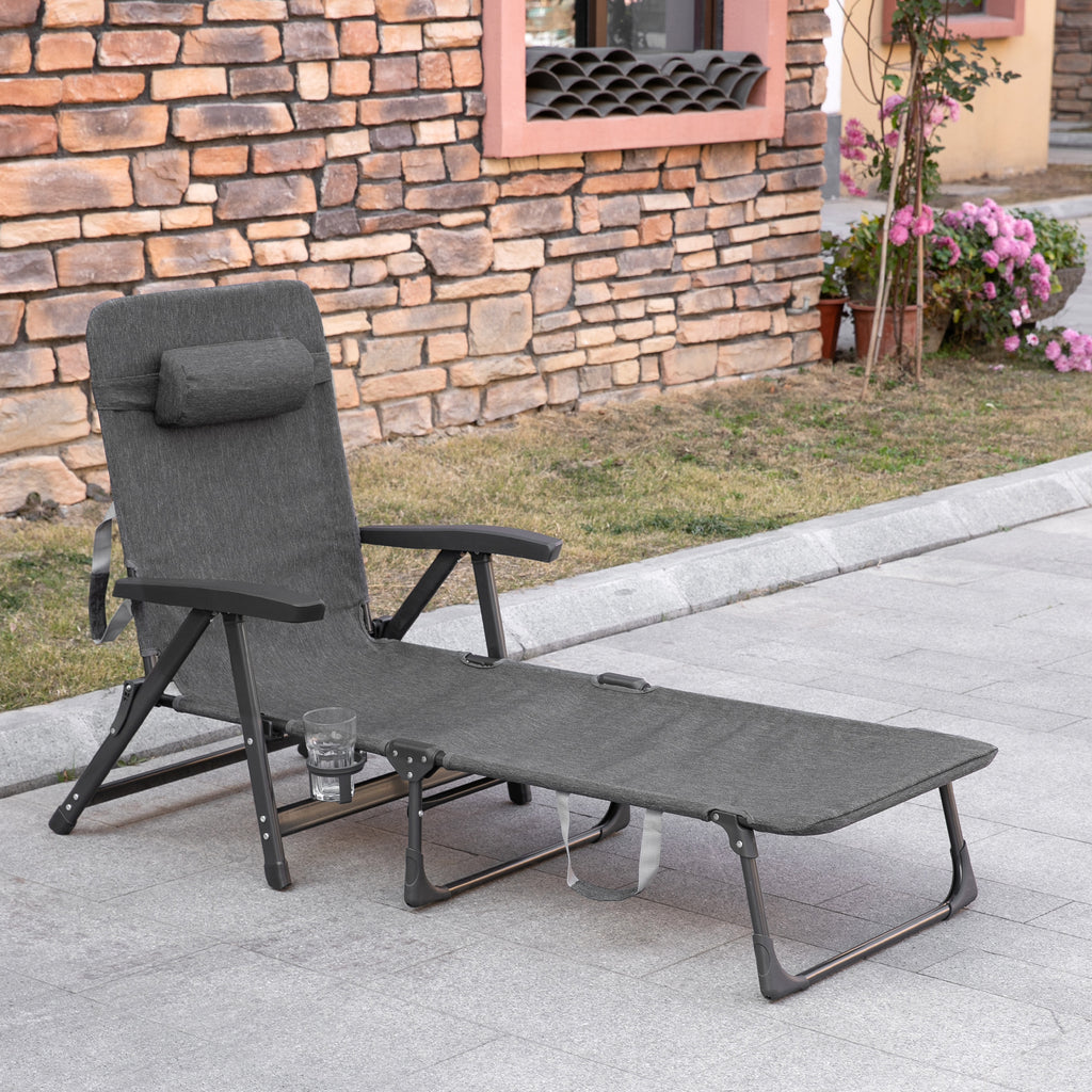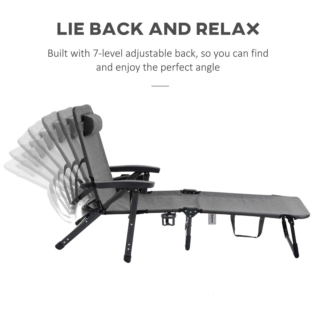 This sun lounger is perfect for relaxing in the sun for hours on end. The seat, made from breathable mesh fabric, comes with a padded headrest to keep your head comfortable and supported. An aluminium frame, with four long legs for plenty of support, the back can be set to seven different positions. A side cup holder so you can enjoy a nice cool drink without having to move. And when done, you can fold this lounger up to store easily.