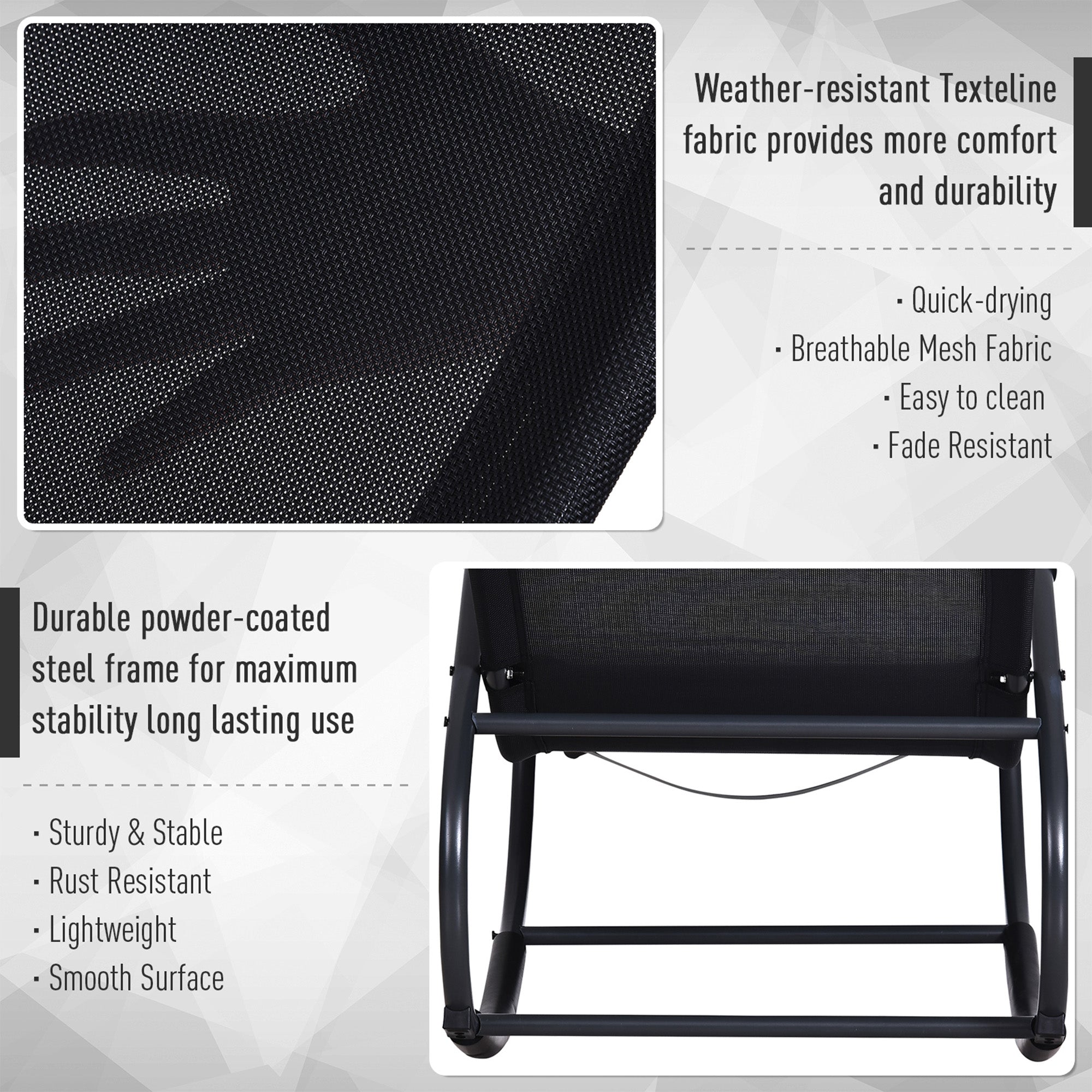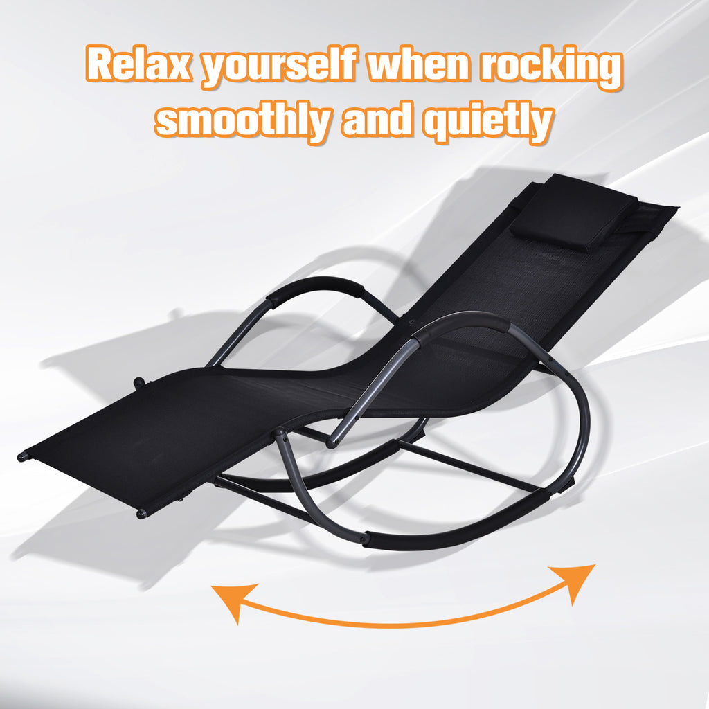 Designed with complete relaxation in mind, this rocking sun lounger is ideal for enjoying the sun in your garden, on your balcony and wherever else possible. Made from lightweight but sturdy metal which can handle up to 160kg, the frame is crafted into a unique design which will let you rock forwards and backwards smoothly and gently, with a tough and durable texteline sling covering the whole of the waved seat for maximum comfort, as well as allowing your skin to breathe in hotter temperatures. With pads on the upper of the armrests so your skin doesn’t touch the metal when It’s hot, this lounger is completed with a removable pillow for head support and comfort if wanted.