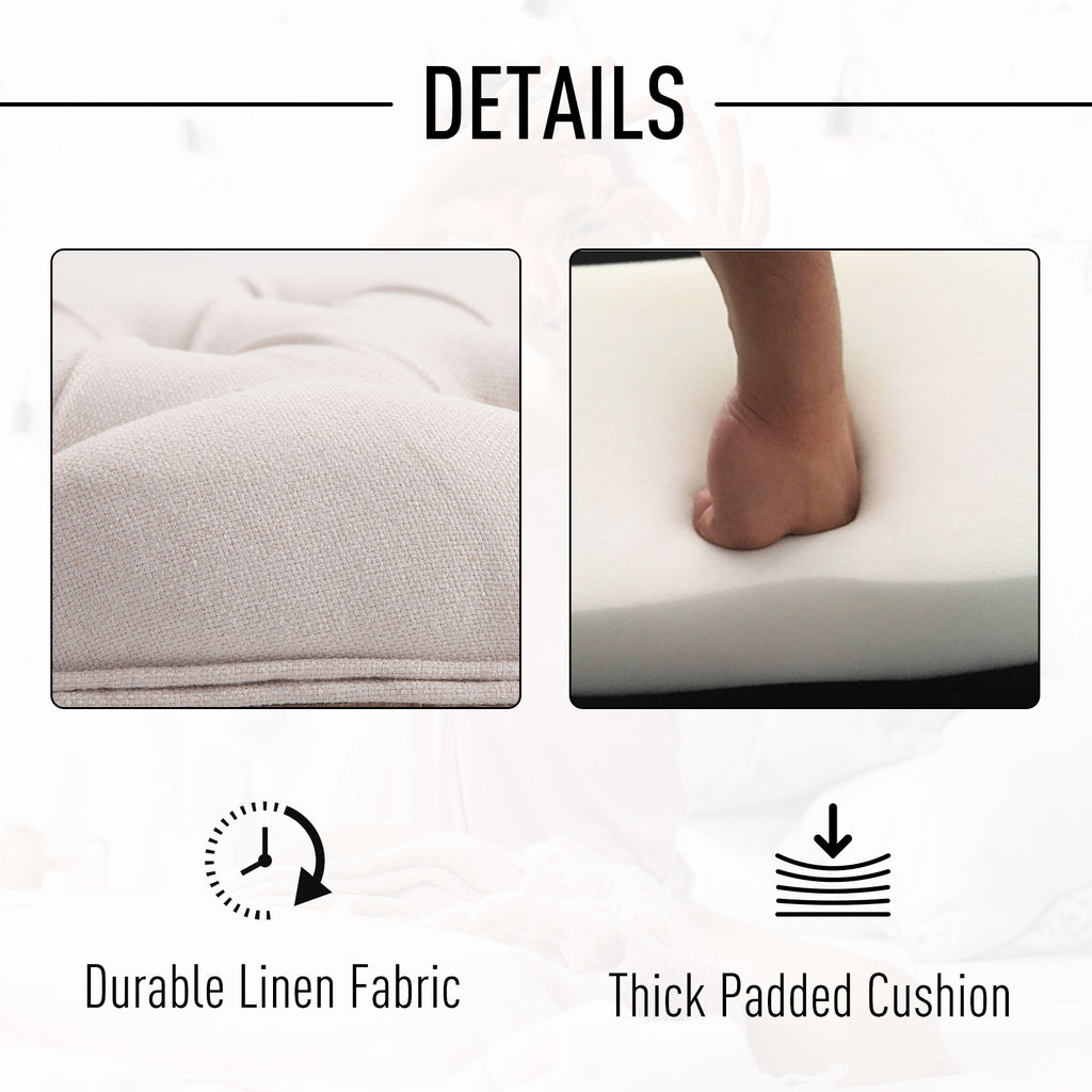 Bring beauty to the bedroom with this bench Designed to be placed at the end of the bed, it brings extra seating room when needed. Antique styled, it uses rubberwood for the frame, finished in a brushed-brown effect stain with delicate accents on the legs. A thick foam cushion is placed on the top for comfort, with tufting all over for extra elegance. A touch of luxe sophistication to love, whether it's to sit on, or just admire.