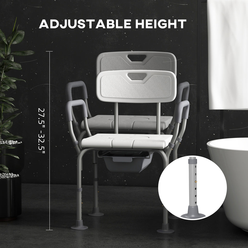 Your versatile companion for the bathroom and bedroom - this shower chair is a great assistant. Use it as an over-toilet chair, bath seat or commode. The aluminium frame is strong, with a wide seat and armrests for support. Adjust the height between 70-82. 5cm to find a level most comfortable for you. The commode design means it comes with a removable under-seat tray, ensuring easy cleaning.