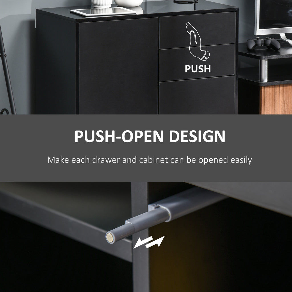 This small sideboard from Direct Home Furniture is a durable and stylish addition to every home, keeping your space clean and tidy with ease. It's made from particle board for a durable structure, with anti-tipping straps on the back for safety. With the push-click design, drawers and cabinet doors are quick and effortless to open and close. The elevated base allows air to flow through for freshness. An effortless way to bring in sleek style into your living space with our storage cupboard.