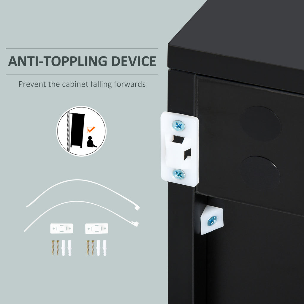 This small sideboard from Direct Home Furniture is a durable and stylish addition to every home, keeping your space clean and tidy with ease. It's made from particle board for a durable structure, with anti-tipping straps on the back for safety. With the push-click design, drawers and cabinet doors are quick and effortless to open and close. The elevated base allows air to flow through for freshness. An effortless way to bring in sleek style into your living space with our storage cupboard.