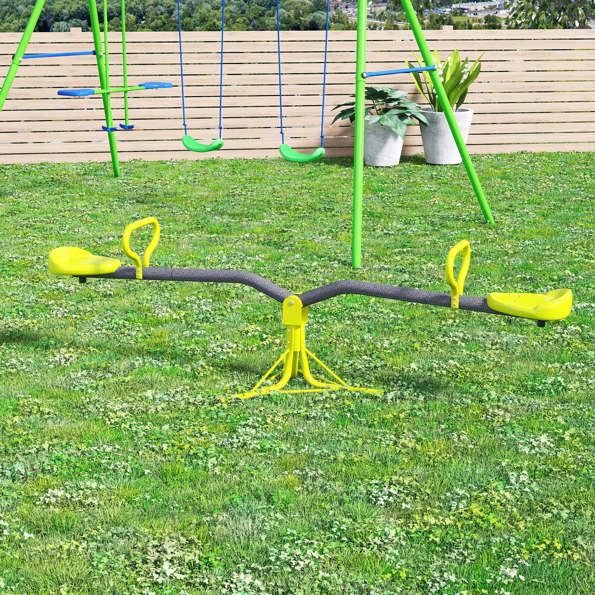 Bring elements of the playground to your home, thanks to this kids seesaw . It goes up and down, like a traditional seesaw, however this product also spins like a merry-go-round, bringing extra fun. Its tripod base keeps it stable when in use, whilst the metal frame is strong and durable – suitable for outdoors. With smooth handles and moulded plastic seats, children can play comfortably, enjoying hours of fun.