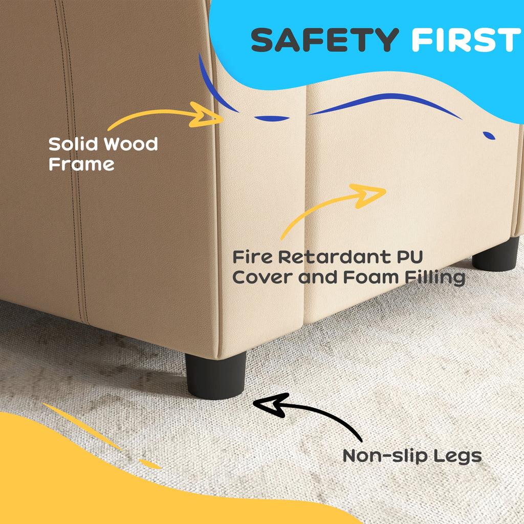 Kids Recliner Chair, PU Leather with Adjustable Backrest, Footrest, Padded Headrest, Beige