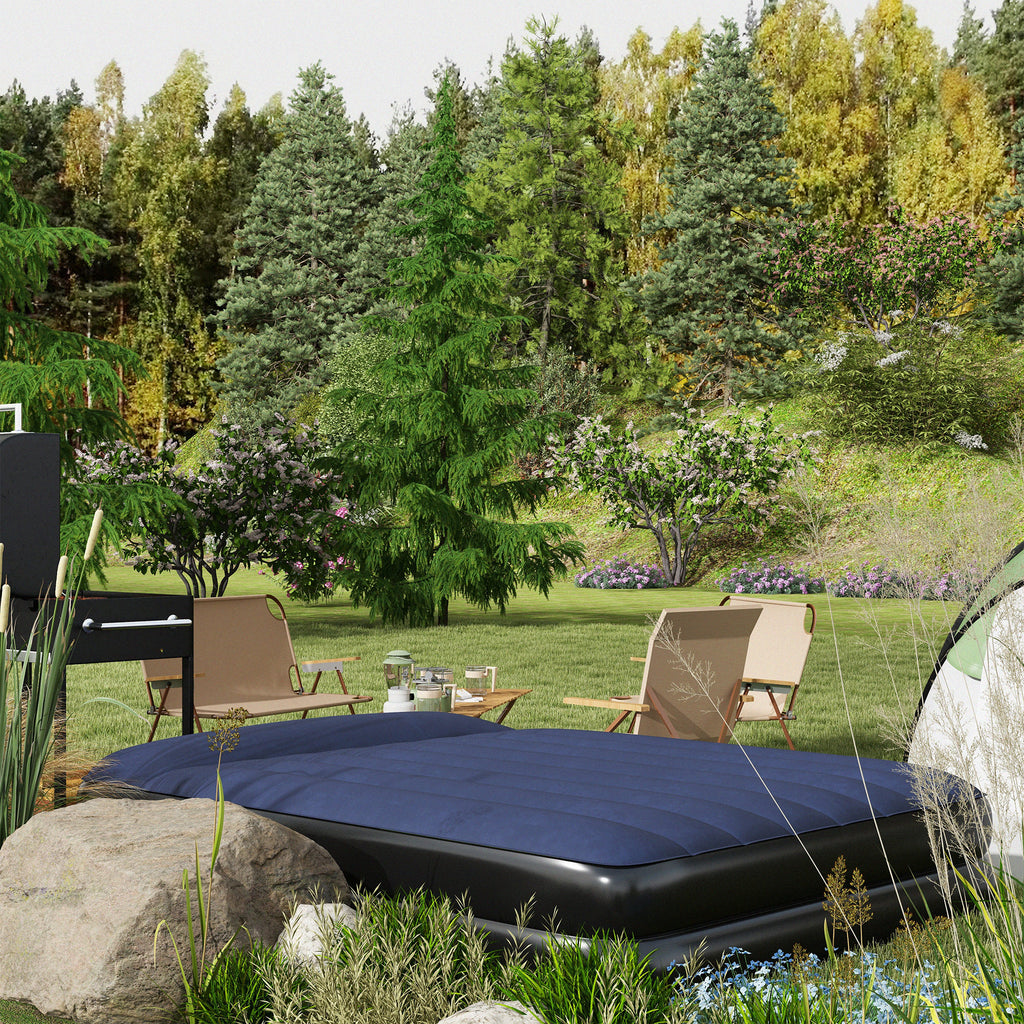 Dream in comfort, even when the spot is limited with this double air mattress. 46cm thickness offers lots of sleeping air softness, with the integrated pillow to support your head and neck. The tough plastic shell is tough, with a soft flocked top: sheets stay in place. Built-in pump: simply connect wire to electric source to start inflating. When done, just deflate, fold and store into the included carry bag.