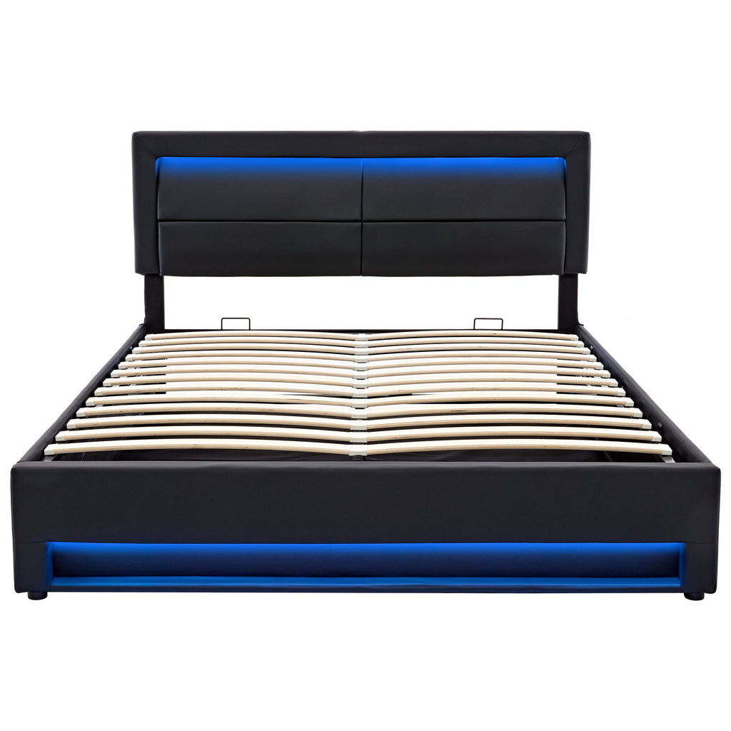 King Size LED Upholstered Bed with USB Charging and Storage - Black