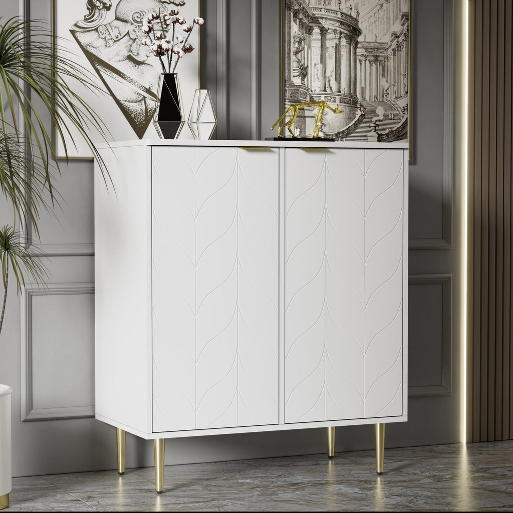 Lacquered Sideboard with 2 Doors and 6 Compartments, Gold-Plated Feet and Handles, 3 Shelves, 75L x 40W x 90H cm, White