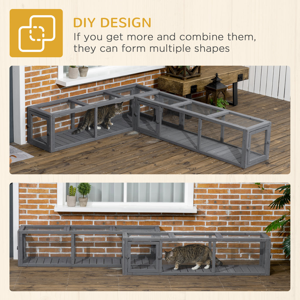 Unlock the secret to your pet's happiness with this outdoor cat house. Practical and comfortable, it turns your outdoor space into a safe play centre for cats to love. A versatile piece, you can connect multiple tunnels together – expand it from the left or right, create L-shapes or even add a cat house to the end. Covered in water-resistant paint, the cat tunnel can stay outdoors with zero fuss. Let your cat enjoy their own secure space, whilst they relish in the fresh outside breeze.
