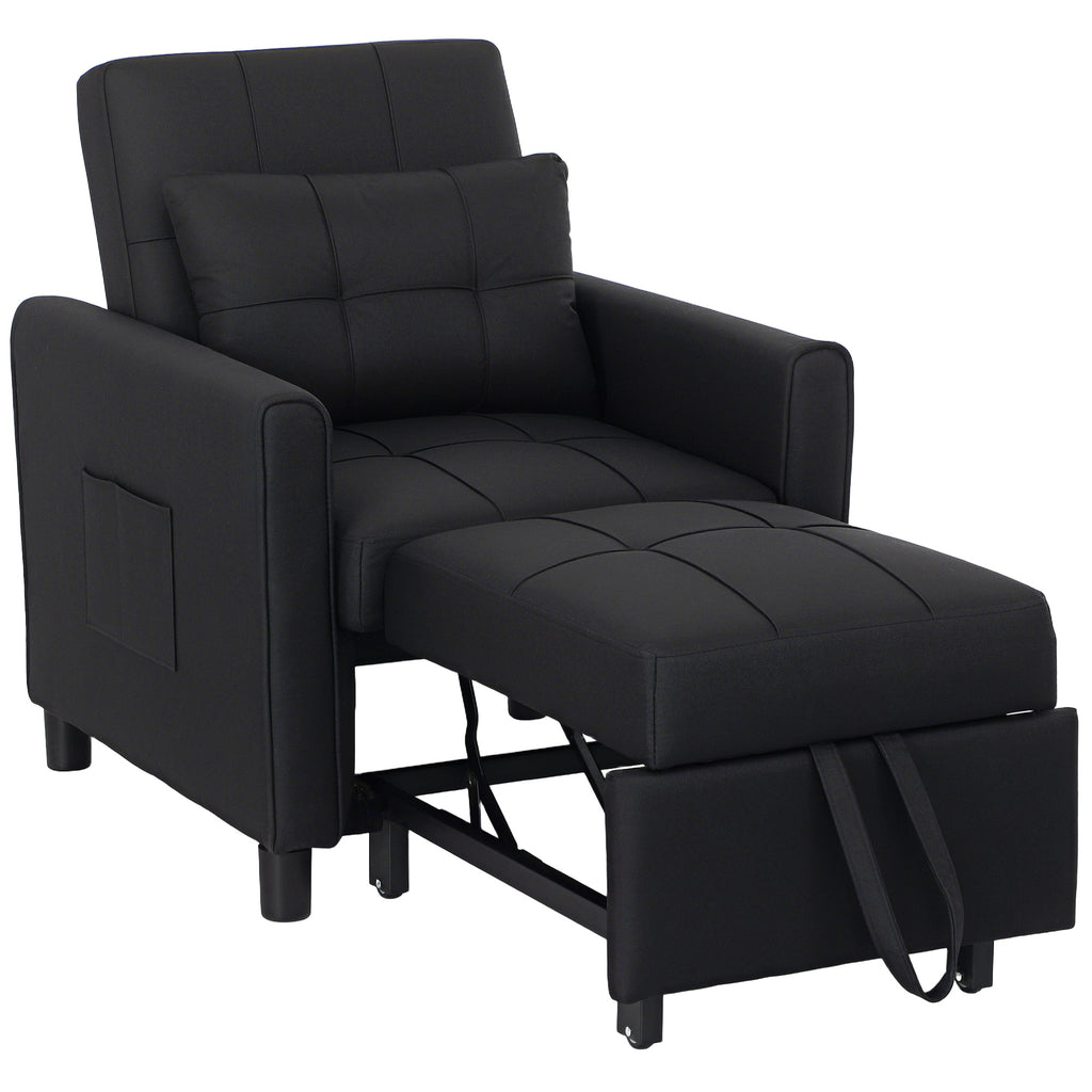 A seat, which transforms into a bed - all so easily? Yes, this is the convertible chair bed. Use in the day to watch your favourite shows, use at night to sleep. Great for small flats and rooms for little space to spare, or for when friends need a place to sleep after a fun night. Thick padding makes it comfortable to use, whatever the need. Sleeper chair is finished with two side pockets for handy, close-by storage.