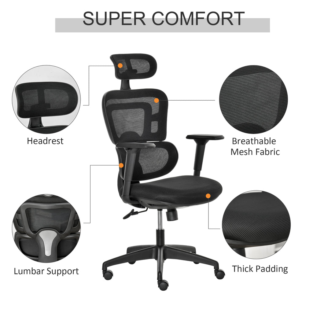 During long working time at home office, you will need a comfortable office chair from . Featuring an ergonomic line design with thick padding and soft mesh fabric, this high back office chair provides breathability. Built-in lumbar and adjustable headrest support keep your head and back supported all day. And you can adjust the seat and armrest height to get the most comfortable sitting position. Use the desk chair swivel wheels, so you can get around the office without getting up.