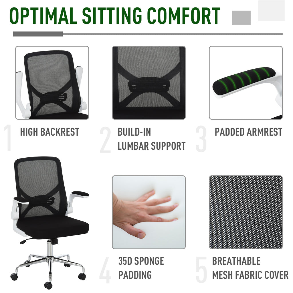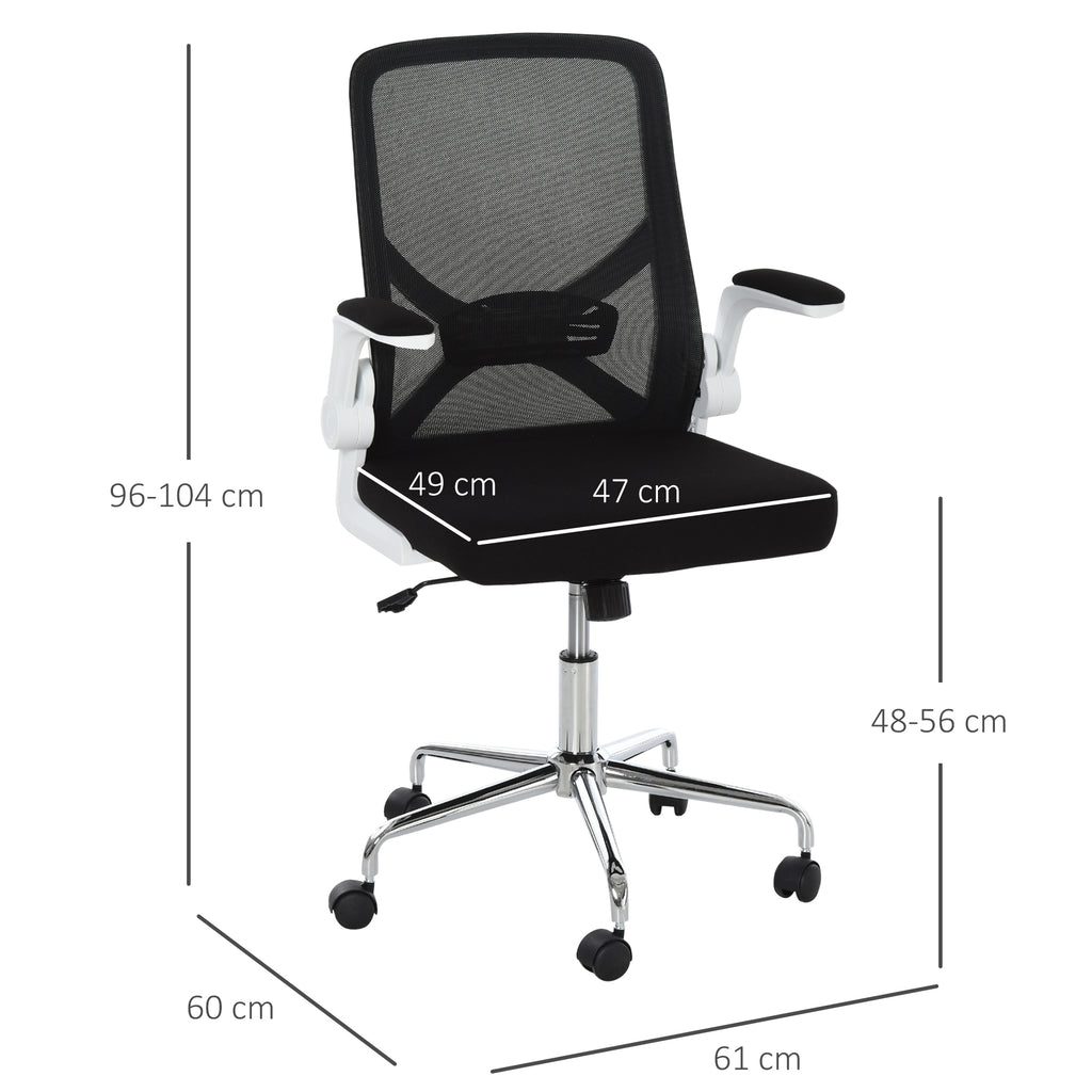 Let short office space be a problem of the past with this innovative chair from . It's made into a unique design, where the backrest folds down, meaning you are able to tuck it under desks when not needed. Ergonomic features include a wide and open-feeling seat, fitted with sponge for comfort, lift-up armrests and a tall back so your body has support. The back is covered with mesh to allow your body to breathe when you lean back, and it's completed with a swivel base and five castor wheels for easy movement whilst seated.