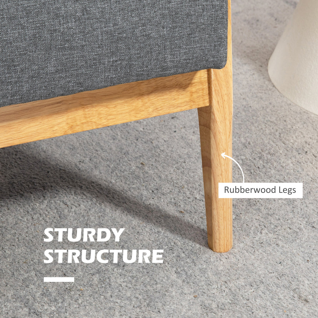 Adopt comfort the retro way with this grey sofa The frame is made from rubberwood for a sturdy structure, in a natural finish for versatility. It pairs wonderfully with the grey linen seat and back cushion, both of which are filled with thick padding for comfort. The button tufts on the back keep the upholstery taut, whilst adding to the style. The small couch is finished with non-slip feet for extra floor protection. It's time to fall in love with your living room all over again.